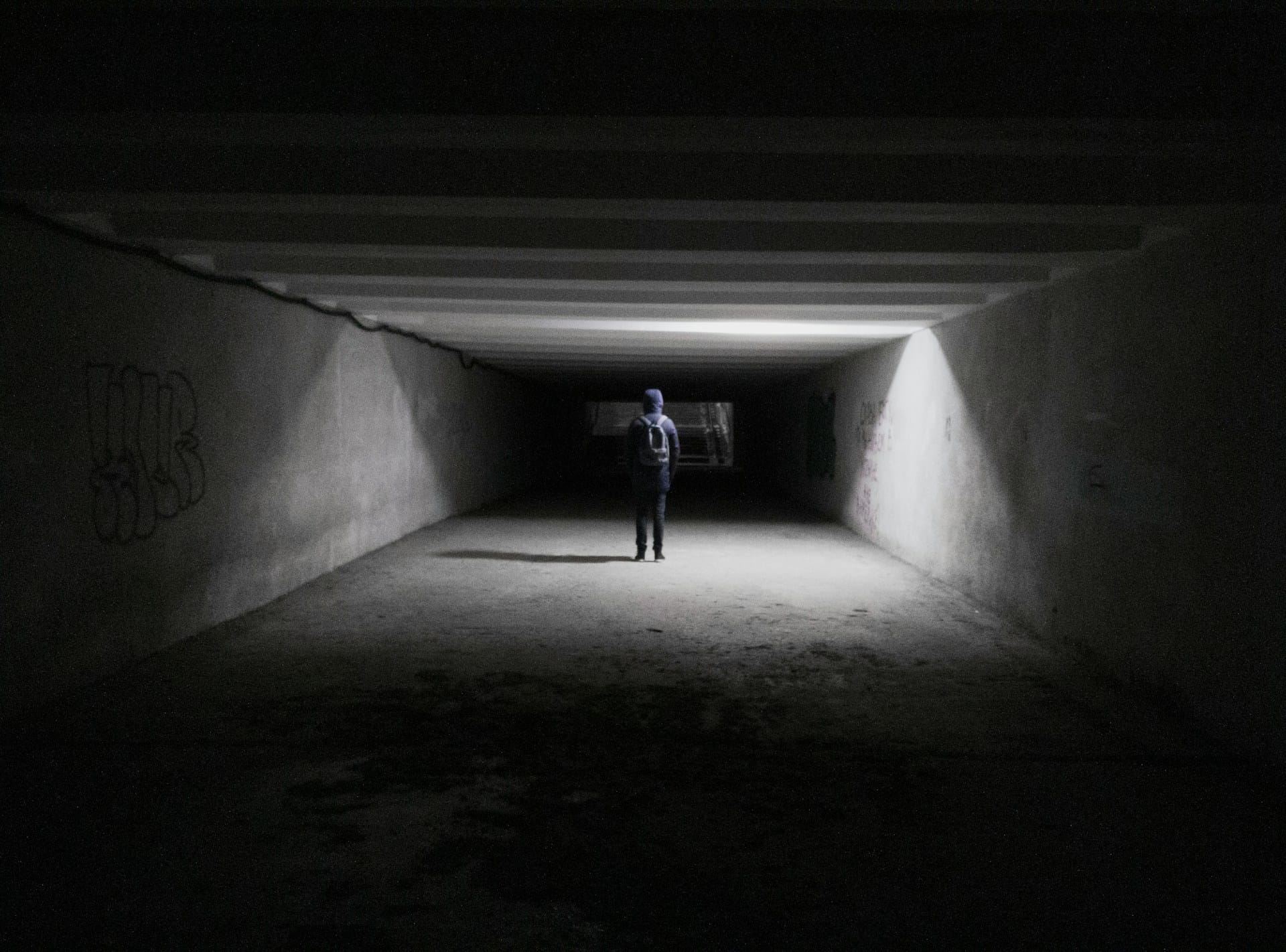 The mist is lifting now, properly lifting. The brutalist towers behind us are becoming clearer, their edges sharp against the pale sky. I can see the coffee shop from here, just across the small run-down plaza ahead.