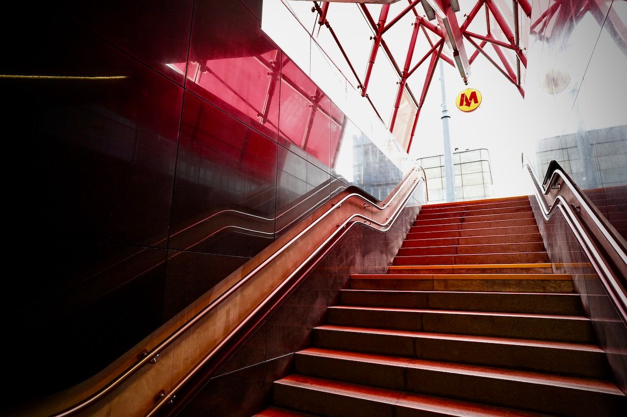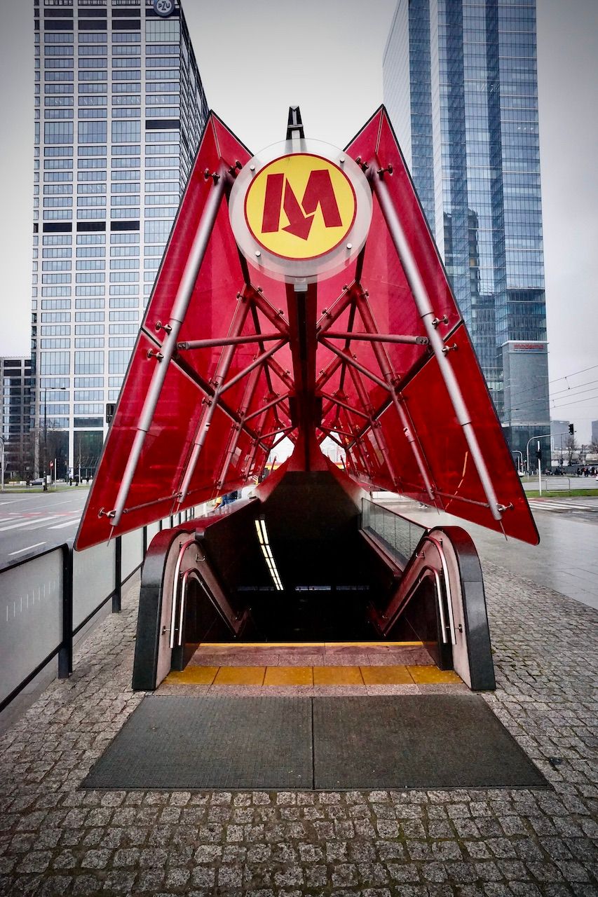 Emerging from the metro at Rondo Daszyńskiego. Glass walls rising to the leaden sky. Muted colours arrested by the vivid entrances to another world underground.