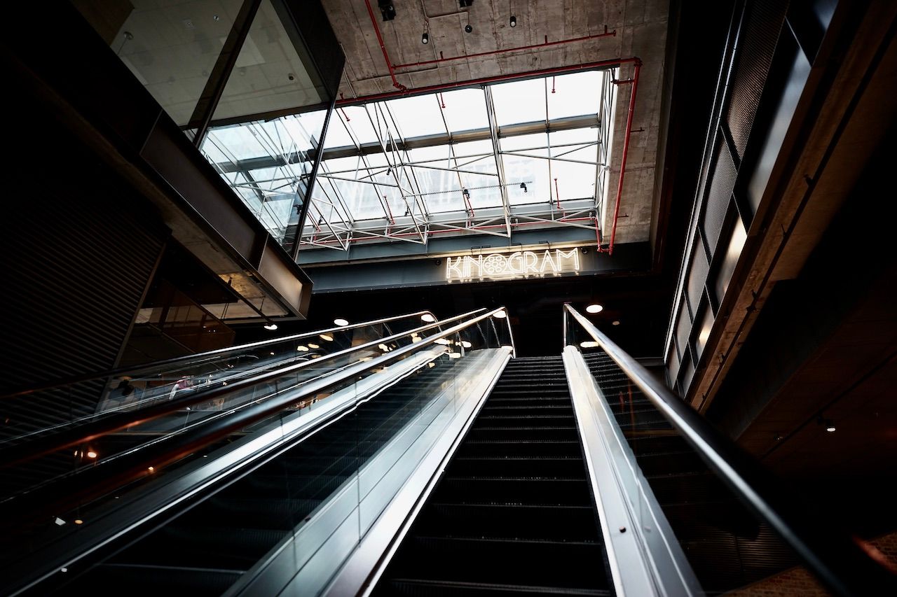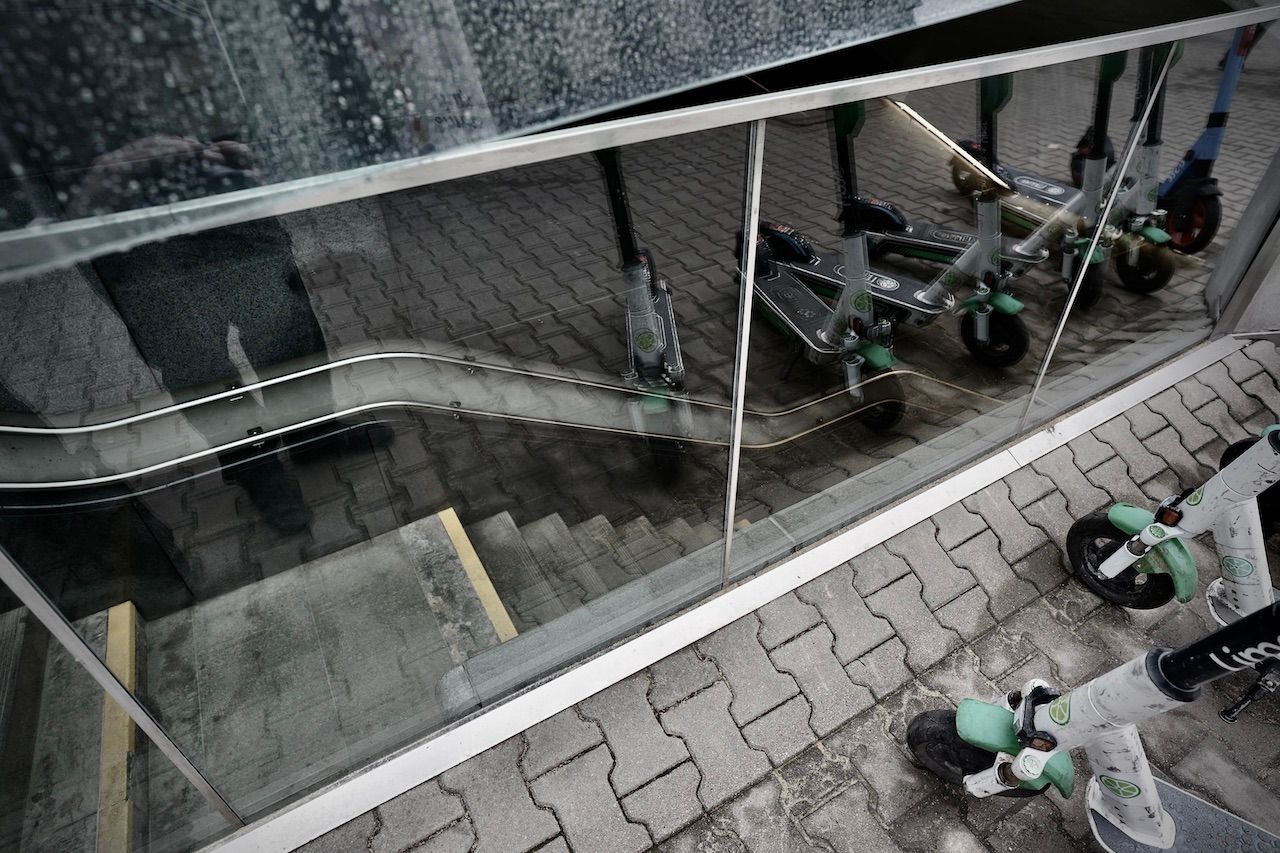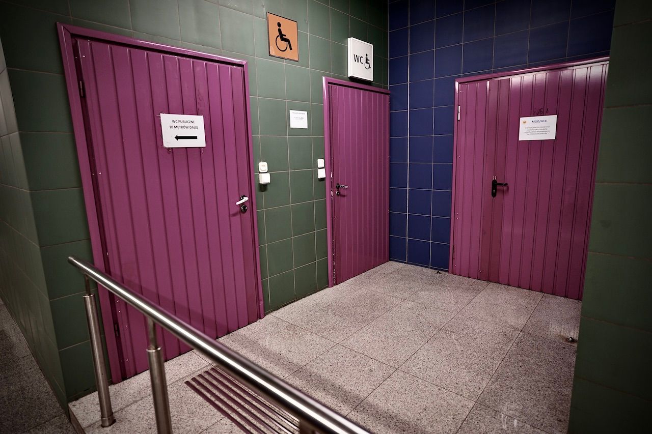 Sheltering from the rain, descending into the bowels of the Warsaw Metro. Criss-crossing streams of people, bright lights and mirrored walls. A sense of calm and order. A clash of commerce and community.