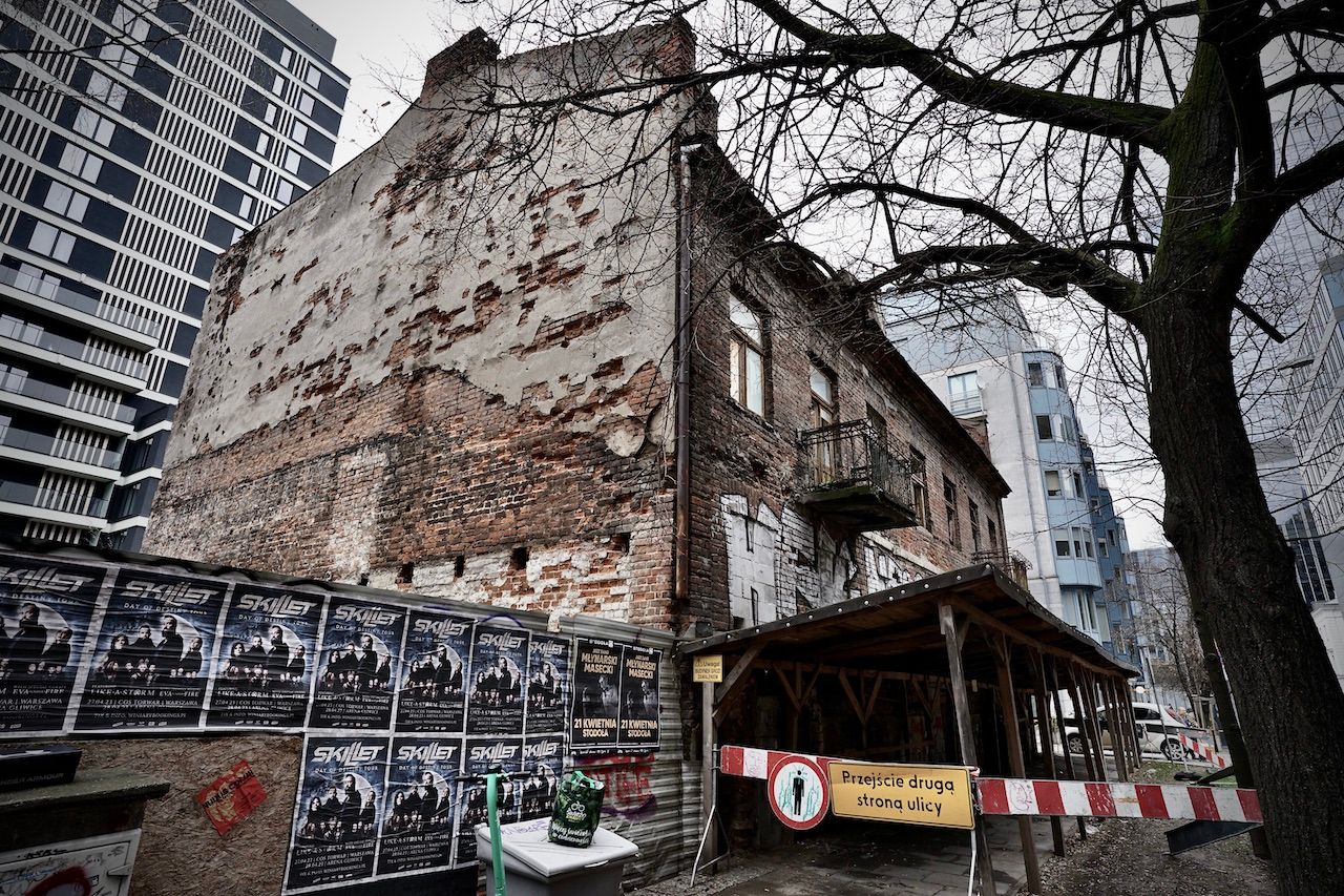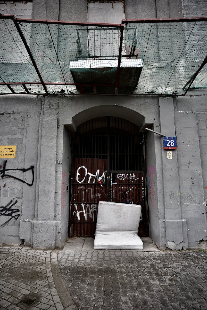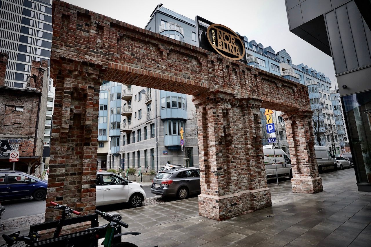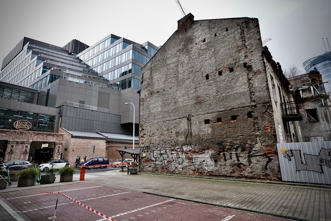 The ultimate expression of gentrification. Remnants of the past stand proudly supporting the new, the modern, the "ultra". We're on the site of the Warsaw Ghetto now. Once, a place of terror and trauma, now a place of coffee to go, consumer goods and street food.