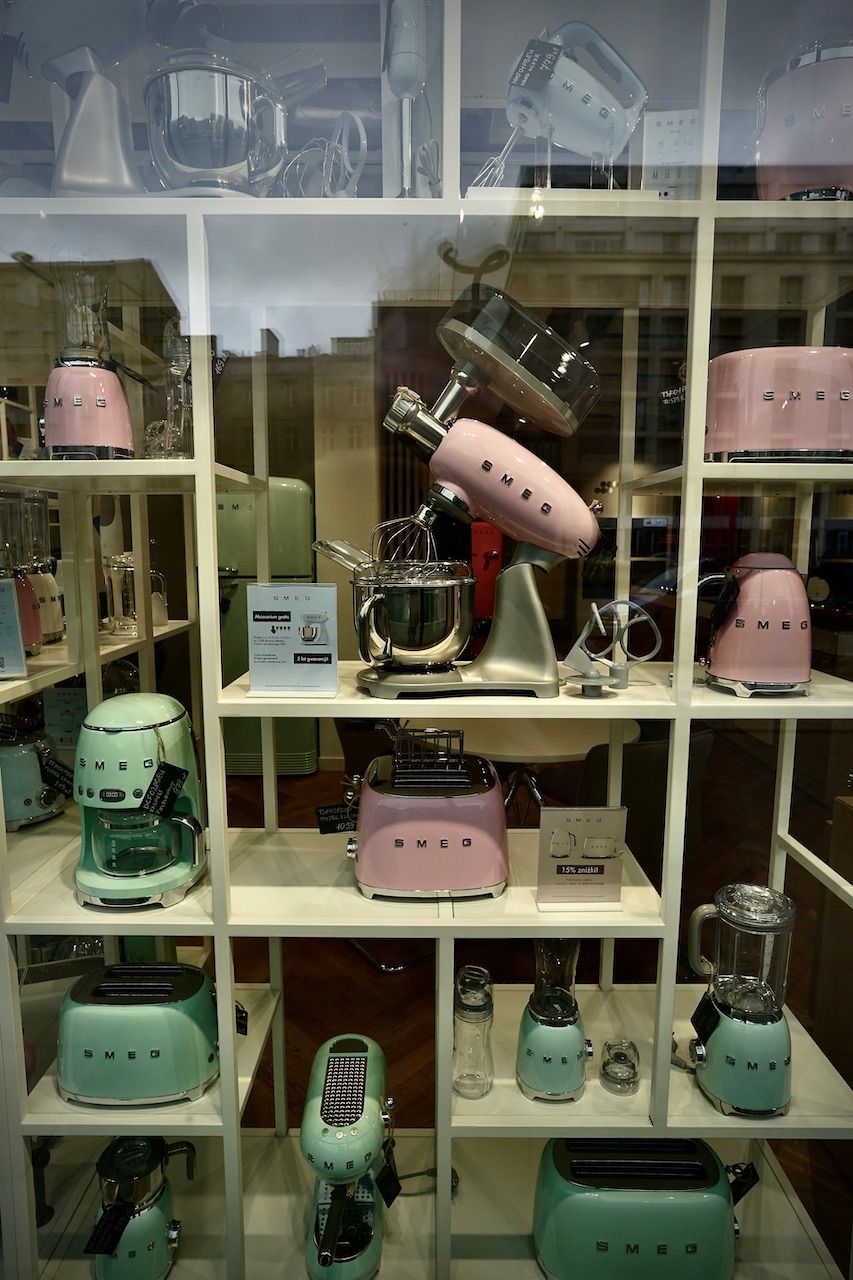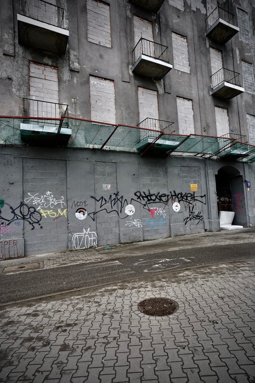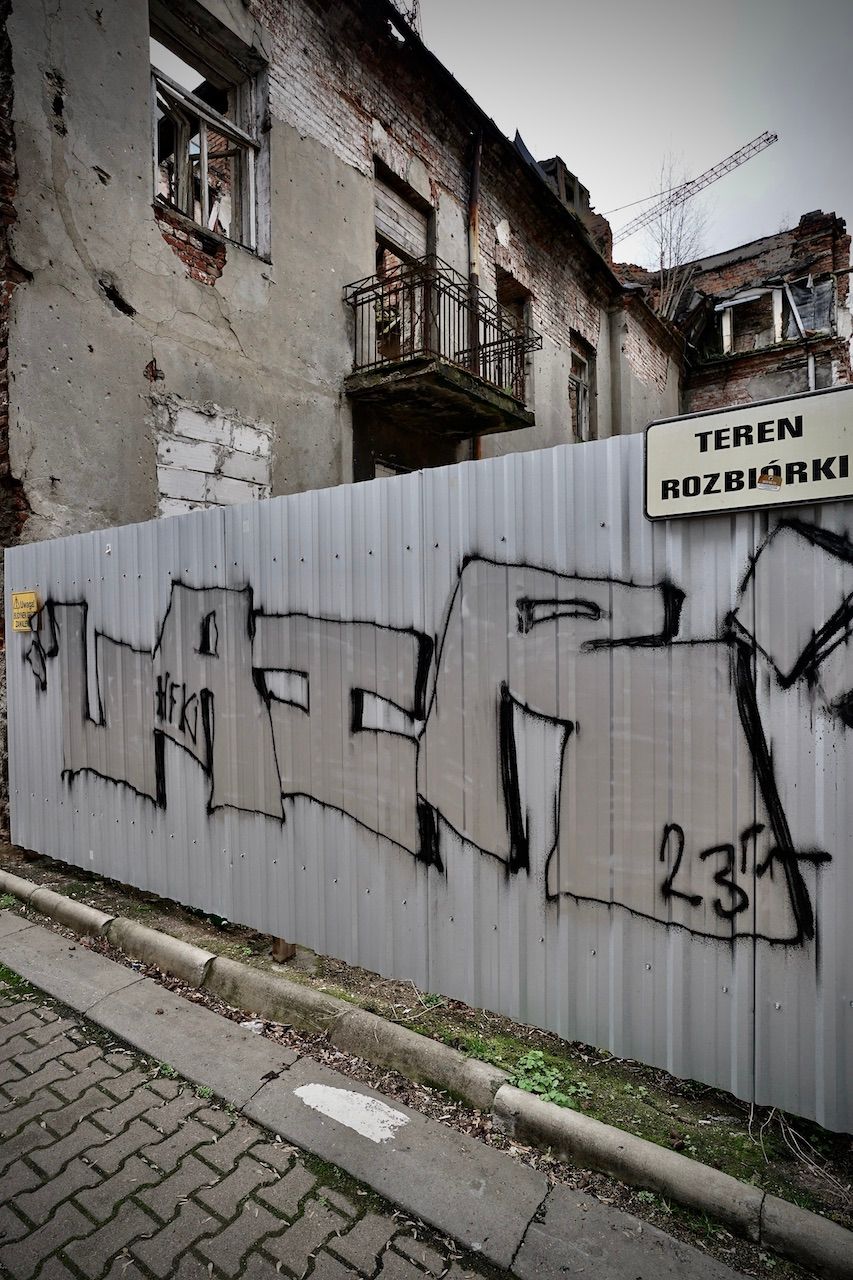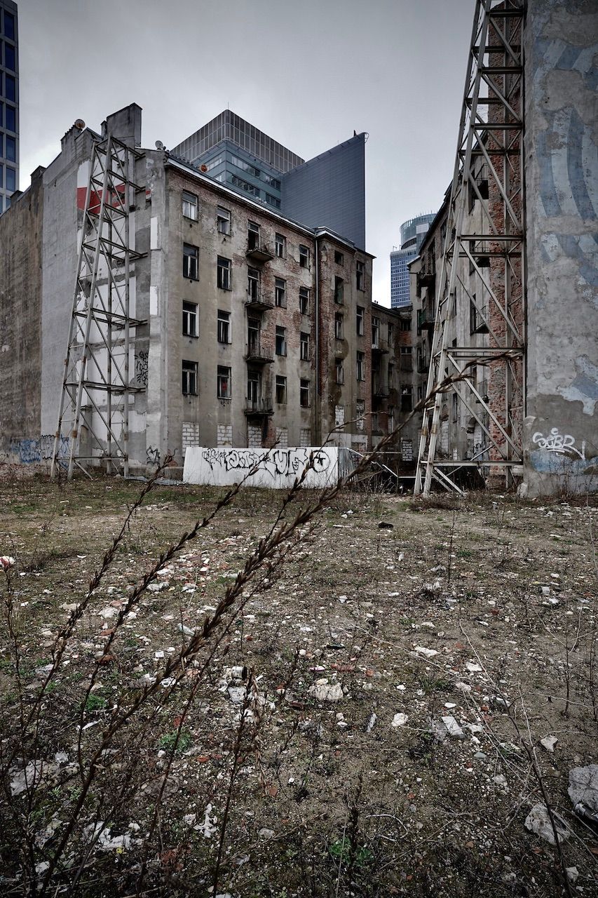 The ultimate expression of gentrification. Remnants of the past stand proudly supporting the new, the modern, the "ultra". We're on the site of the Warsaw Ghetto now. Once, a place of terror and trauma, now a place of coffee to go, consumer goods and street food.