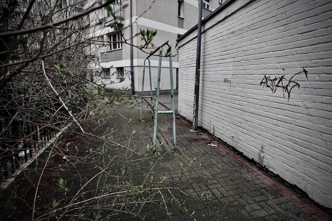 Hidden behind the glamour, quiet, subdued, struggling for air. Hard working, tired and lack lustre. Empty playgrounds whisper amid the din, looking up in fear as the concrete and glass prepare to devour.