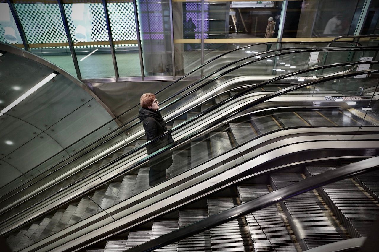We are half way now. Neither East, nor West. Metro Świętokrsyka is a unique underground world. At one moment you are alone, in a maze of passages. Suddenly caught, like a leaf, downstream, funnelled though security gates, QR codes and infographics.