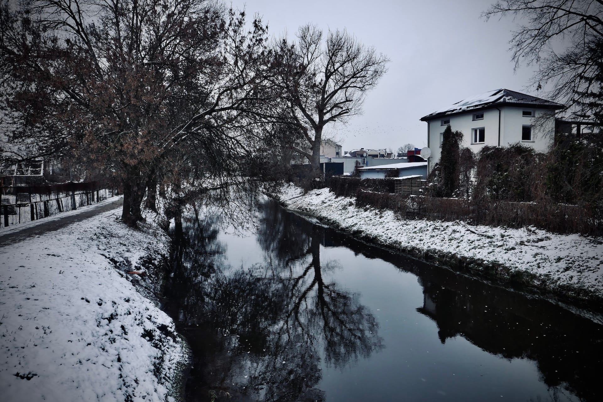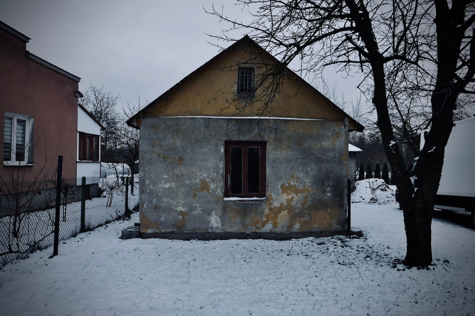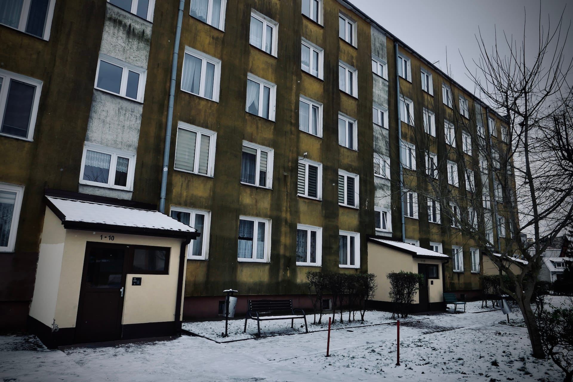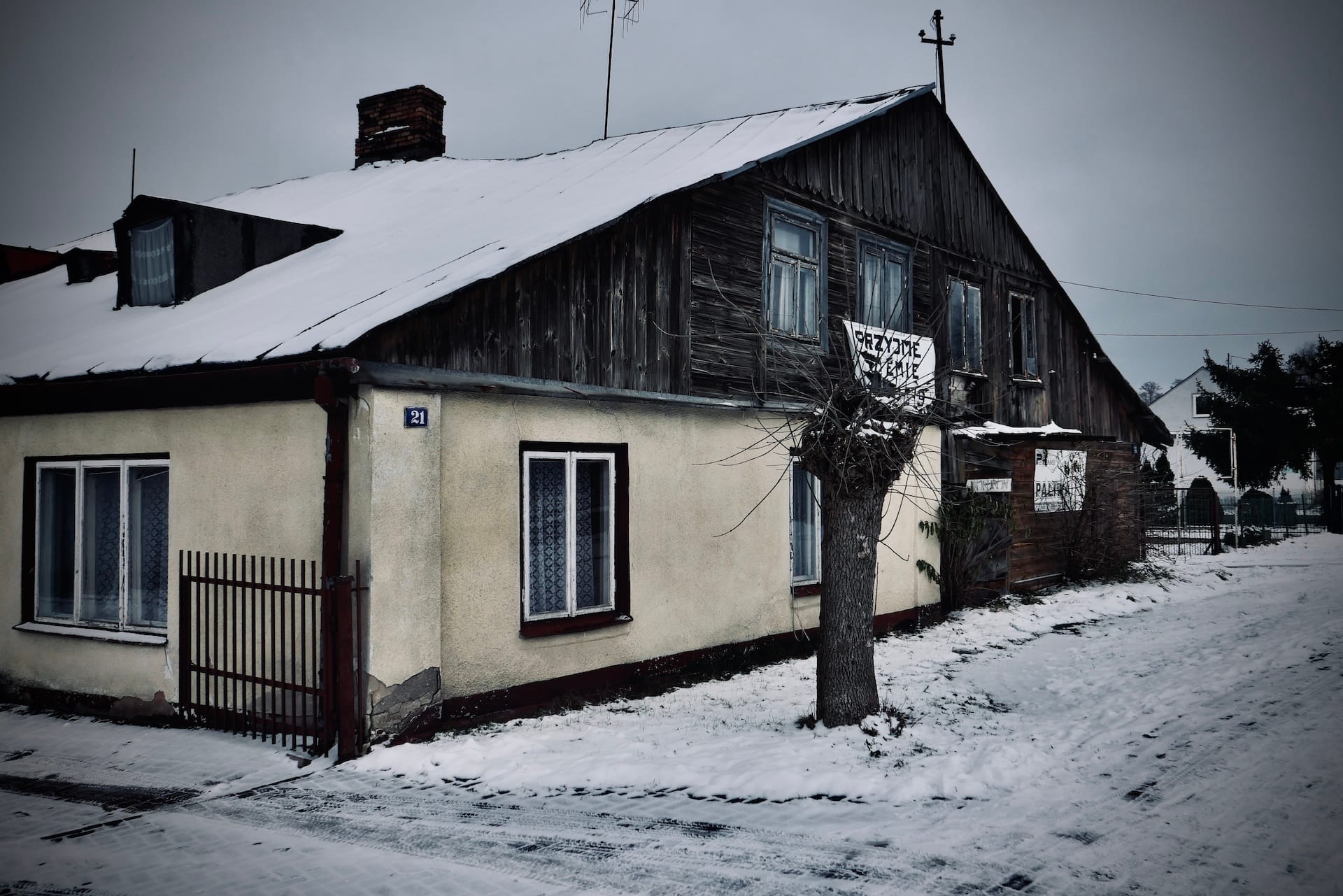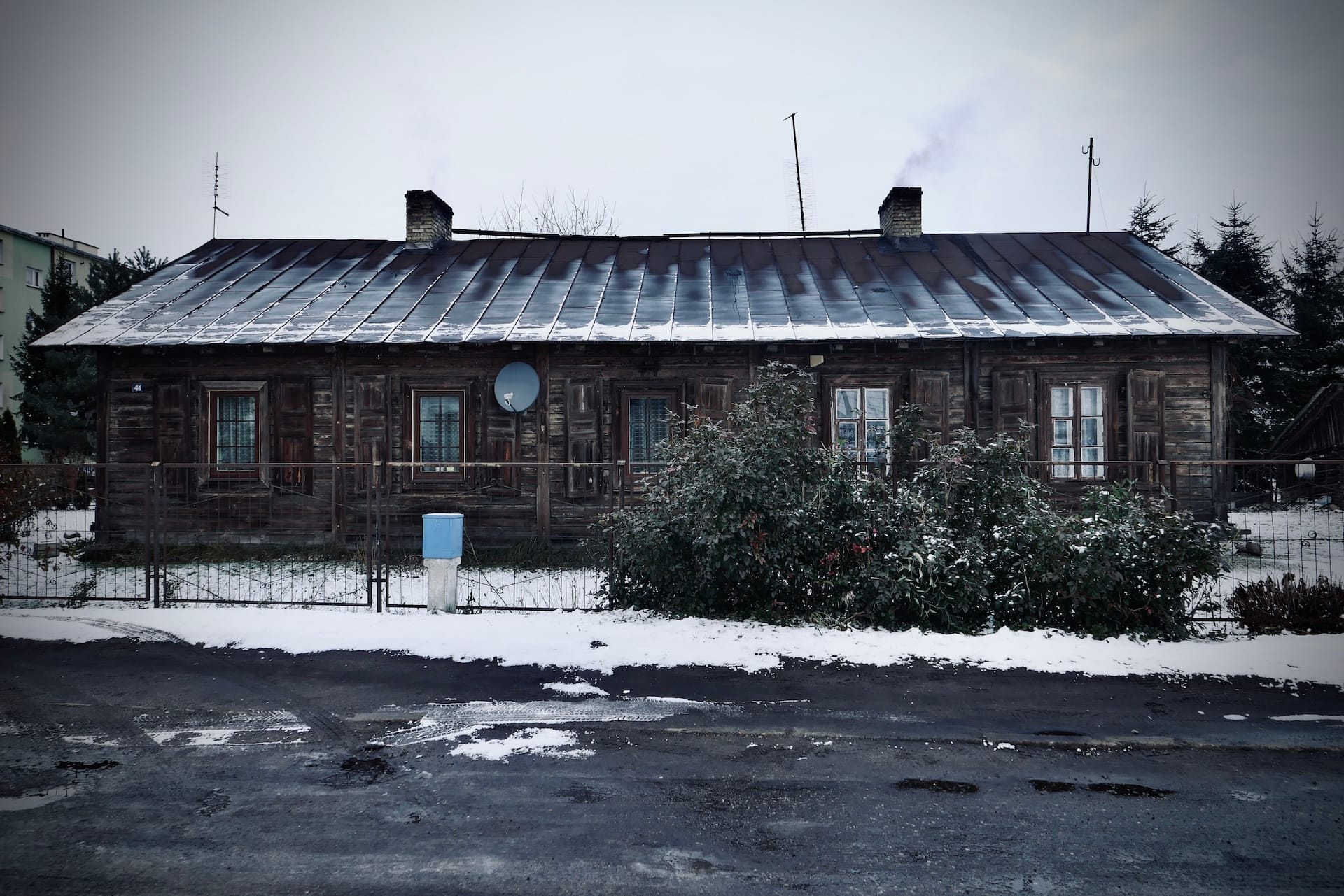 Crossing the river and looking back at the town it seems almost frozen in time. Its drab colours and dilapidated buildings convey a deep sense of unease and guilt.