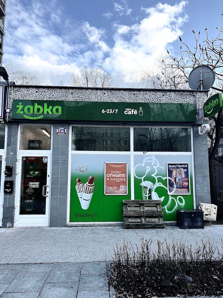 Fact: It is impossible to walk more than 200 metres in Warsaw without passing a Frog. (No cheesy jokes, please). Warsaw runs on Zabka (frog). They are known for their strategic locations to anyone, anywhere needing anything at any time of day. Zabka's rock, and they roll. Proper "fabric of the city" stuff. You're welcome.