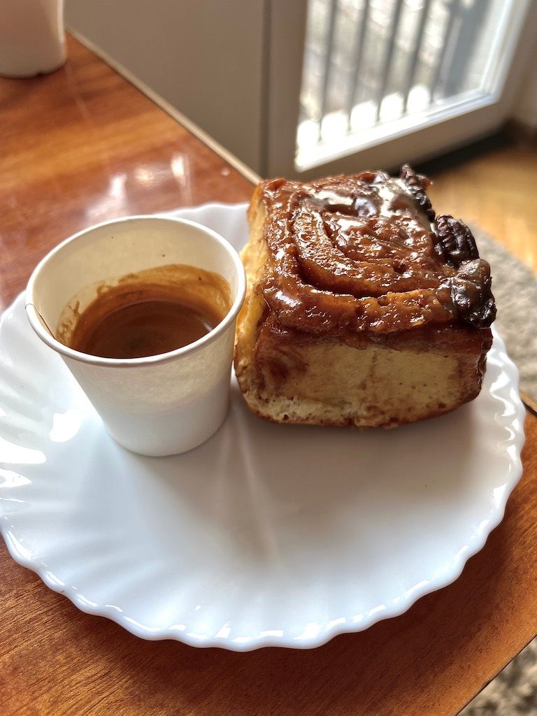 This should have been much more straight forward. But I'm not a massive frequenter of coffee shops. (Despite very much trying to do so!). Plus, let's face it, if you're going to find a seat in a bustling cafe, take off coats and gloves, you really deserve more than a mere espresso. So this is a cheeky win - for on the ground floor of my block lies MissMellow - a "pop up" version of one of Warsaw's finest boutique coffee and cake parlours. One espresso, bro, with cake - and a latter hidden in the wings to wash it down.